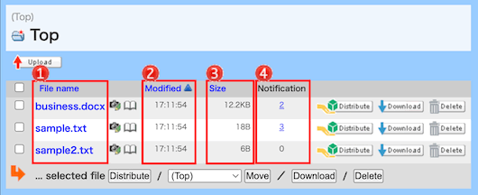 In the area of the system, you can operate like as follows: see the list of files, distribute files, upload files, download files, delete files, create folders, edit folders, delete folders, move files into another folder, see the details of files, change file’s name and so on.